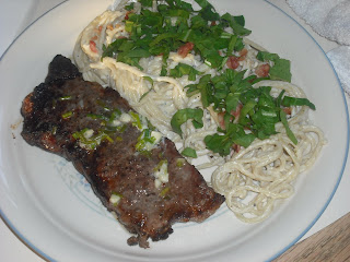 I took this recipe from November 16th because today's recipe seemed a little more suited for around Thanksgiving time: Pumpkin Polenta. The lamb was good, although next time I would probably cut back on the meat. The burgers were really big! I made this recipe for lunch. I couldn't find thick asparagus anywhere, so I had to settle for the thin ones. I just didn't slice them up.